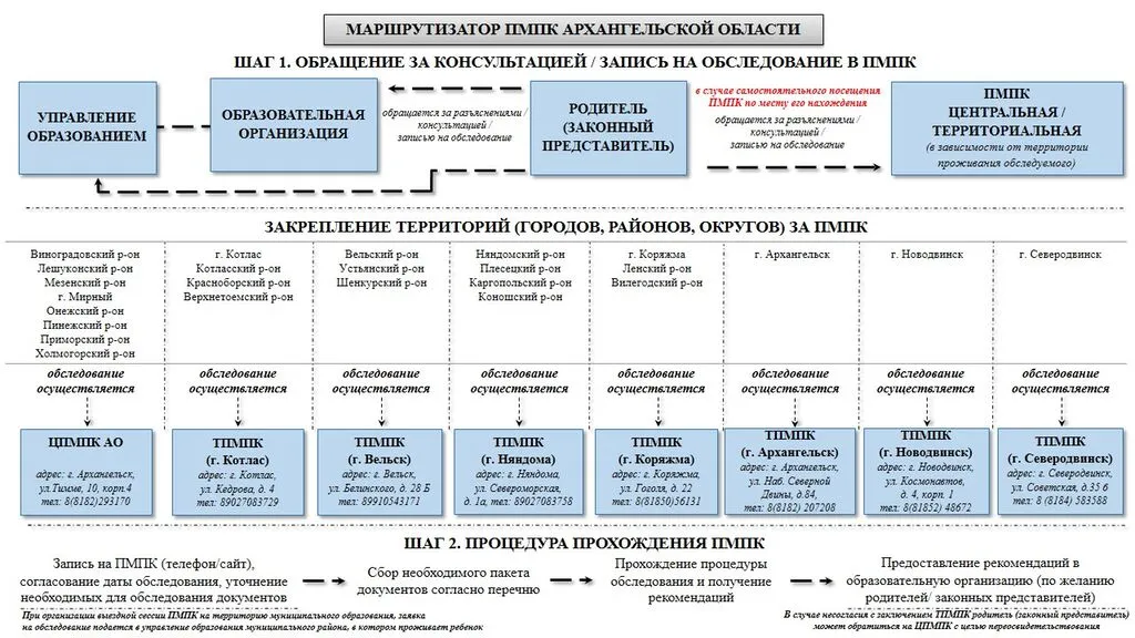 С января 2026 года в Архангельской области действует обновлённая структура ПМПК: теперь есть одна центральная комиссия в Архангельске и четыре филиала – в Котласе, Вельске, Няндоме и Коряжме. Как и ранее, ПМПК продолжают работать в Архангельске, Северодвинске и Новодвинске.